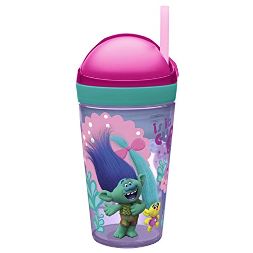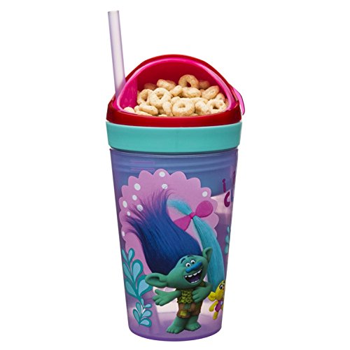 Zak! Designs Zak! Snak Snack & Drink Container Featuring Trolls Graphics, 4 oz. Snack and 10 oz. Drink in One Easy To Open Container, BPA-free and Break-resistant Plastic
