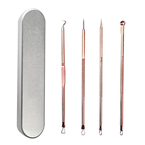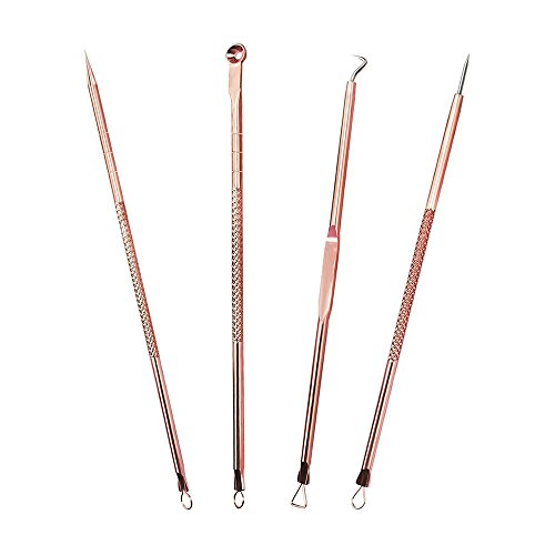 MiFacie Blackhead Remover Tool Kit Stainless Steel Pimple Comedone Extractor Acne Removal 4 Pcs, Rose Gold