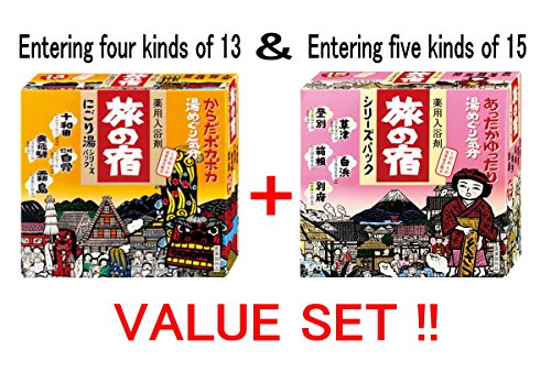 Tabino Yado Hot Springs Bath Salt Milky Assortment (4 kinds 13 packages) & Clear Assortment (5 Kinds 15 Packages) Value Pack from Kracie (Total 9 Kinds...