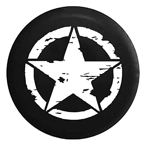 Oscar Mike Military Tattered Tactical Star Spare Jeep Wrangler Camper SUV Tire Cover White Ink 33 in