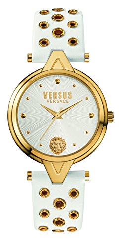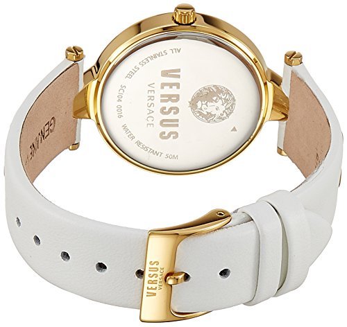 -. Binding : Watch -. Brand : Versus by -. Department : womens -. EAN : 7630030510465 -. Feature : Citizen 2035 Quartz movement; Yellow gold IP stainless steel case / White dial with guilloche pattern and Versus lion logo at 6 o'clock White genuine leather strap with eyelets / Quartz Movement / Case Diameter: 34mm / Water Resistant To 165 Feet -. Label : First SBF Holding Inc. -. Manufacturer : First SBF Holding Inc. -. Model : SCI040016 -. MPN : SCI040016 -. PackageQuantity : 1 -. PartNumber : SCI040016 -. ProductGroup : Watch -. ProductTypeName : WATCH -. Publisher : First SBF Holding Inc. -. Studio : First SBF Holding Inc. -. Title : Versus by Women's 'V eyelets' Quartz Stainless Steel and Leather Casual Watch, Color:White (Model: SCI040016)