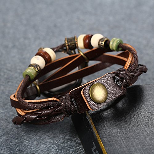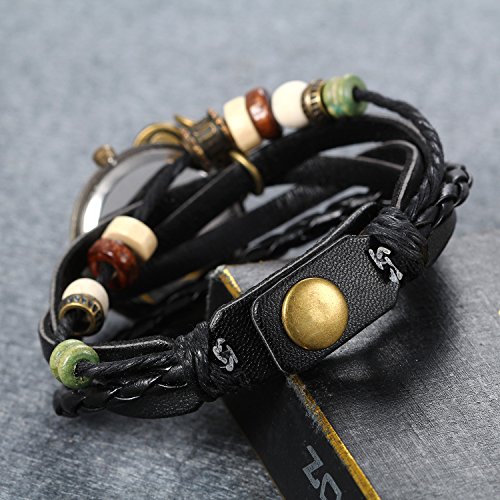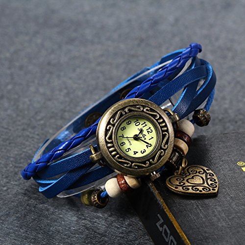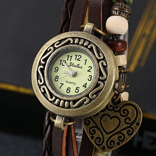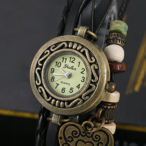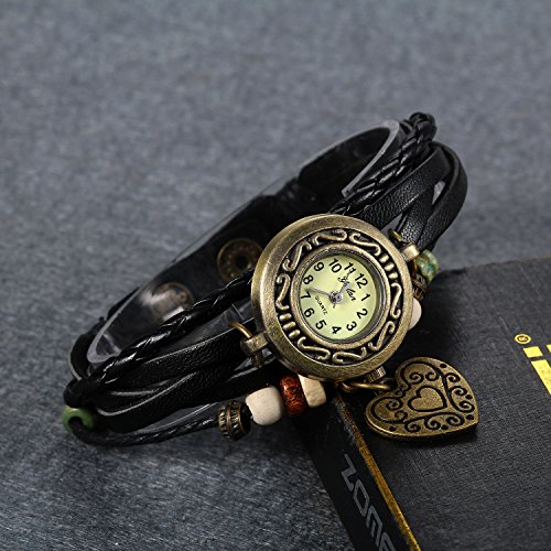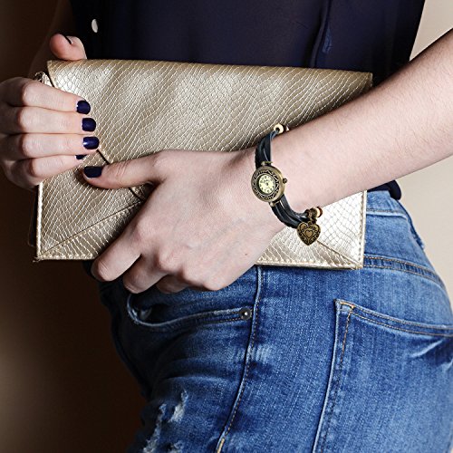 -. Title : Lancardo 腕時計 レディース ハート ペンダント ブレスレット ウォッチ アナデジ表示 多重編み込み レザーバンド クオーツ 腕時計