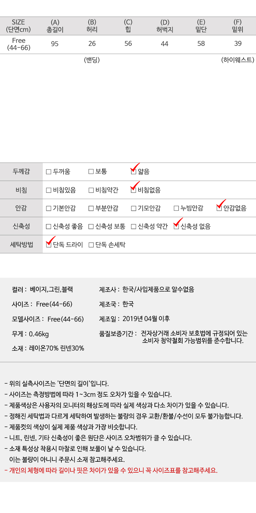 | 특이 사항 | 배송, 변경, 반품 환불에 대한 문의는 위 연락처로 문의 주세요. | ||
