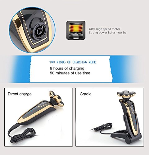 - TWO KINDS OF CHARGING MODE:The shaver can be charged by direct charger plug or by the charging stand.Up to about 50 minutes of continuously shaving,by only 8 hour charging, this electric razor holds charge for multi-day use.