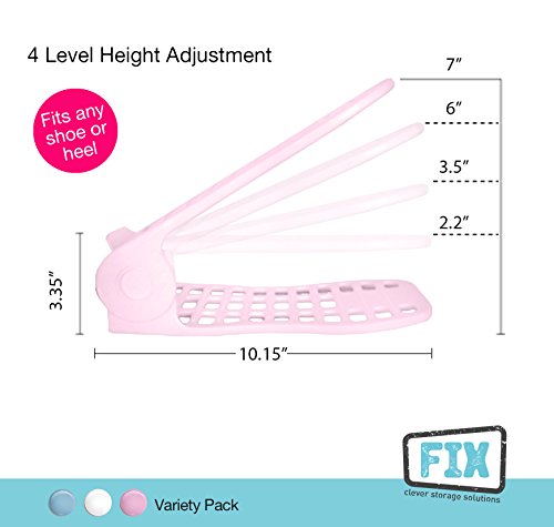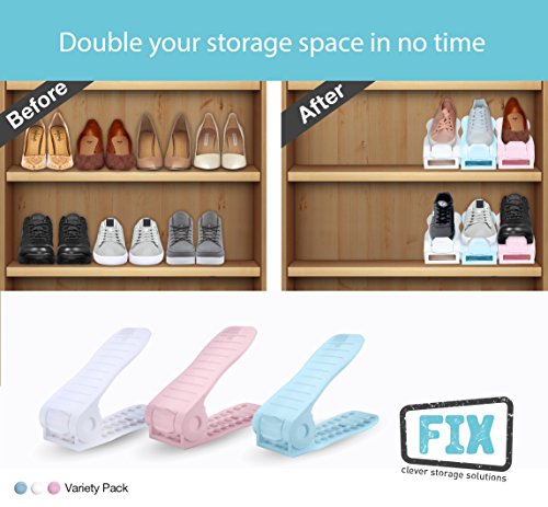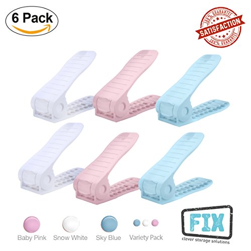 FIX Shoe Slots - Adjustable Shoe Organizer Space Saver Storage Rack Holder Double shoe rack , No Assembly Required , 6 Piece Set (Variety Pack)