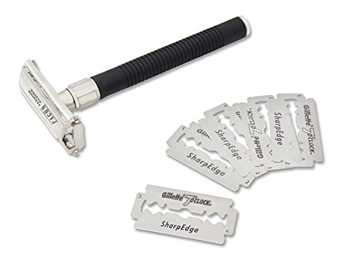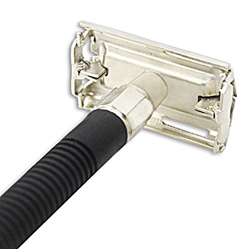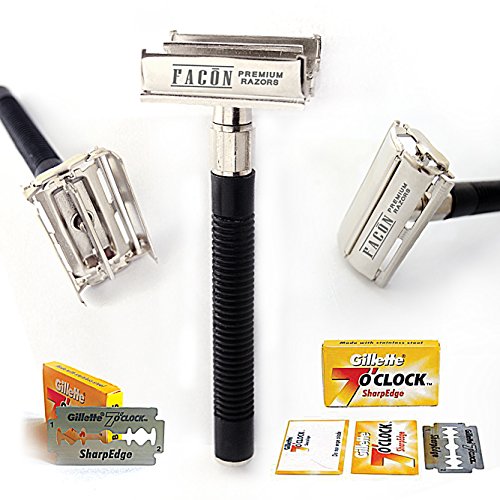[BLACK] - Facón Double Edge Long Handled Classic Vintage Heavy Duty Safety Razor for Smooth Wet Shaving Experience - Butterfly Premium Design - Includes 5 Luxury Platinum DE Razor Blades