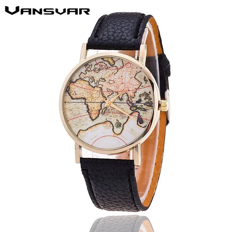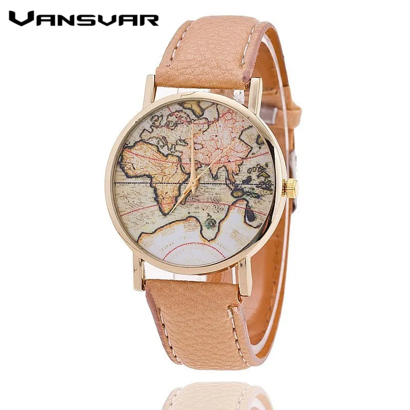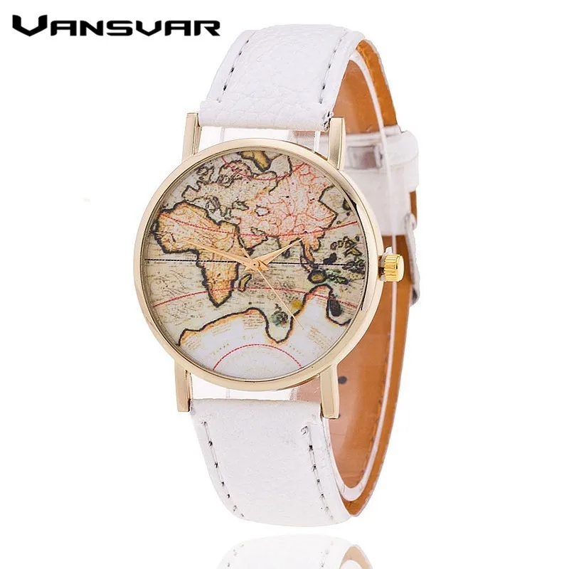 Vansvar Brand Fashion World Map Watch Women Casual Leather Strap Quartz Watches Montre Femme Relogio Feminino 1133