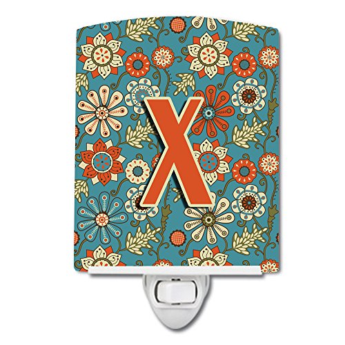 Caroline's Treasures Letter X Flowers Retro Blue Ceramic Night Light, 6 x 4", Multicolor
