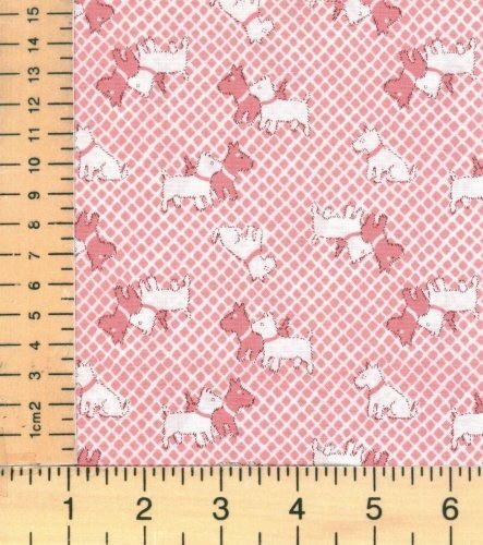 1 Yard PreCut - Pink Scottie Dog Cotton Fabric - "Storybook Playtime" Series (Great for Quilting, Sewing, Craft Projects, Throw Pillows & More) Pre-Cut 1 Yard X 44"
