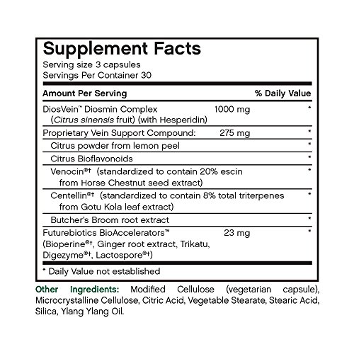 -. Feature : HEALTHY CIRCULATORY SYSTEM SUPPORT: Promotesthe health and efficiency of your circulatory system with every capsule / ARTERY AND VEIN HEALTH SUPPORT: VeinFactors will help support your natural strength and flexibility, improving the circulation process. / HIGHEST QUALITY INGREDIENTS: Our blend of clinically proven nutrients provide a complete venous support formula. / HEALTHIER LIFESTYLE:Futurebiotics has been committed to "Creating a Healthier Future* by helping our customers lead healthier lives through better nutrition / WORKS OR YOUR MONEY BACK: We back our products up with a 365-day hassle-free money back guarantee. There's no risk when you order now!
