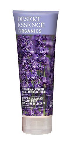 Desert Essence Organics Bulgarian Lavender Hand and Body Lotion features an aqueous infusion of certified organic extracts like black tea leaf, green tea leaf, vanilla, clove flower extract, sunflower oil, jojoba oil, glycerin, and carnauba wax that work in synergy to provide a soothing effect on your skin and senses. This hydrating skin lotion is not tested on animals during its production.
