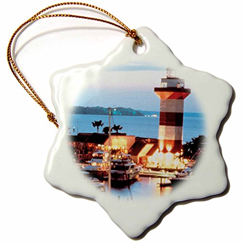 3dRose orn_61725_1 Harbor Town Lighthouse at Hilton Head Island at Dusk Snowflake Decorative Hanging Ornament, Porcelain, 3-Inch