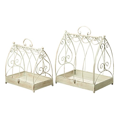 - TIMEWORN ALLURE the gorgeous patina with hints of rust peeks out behind the distressed paint. EACH ARE OVER 1 Ft HIGH. Well sized these stunning cages are 12 1/4 and 16 1/2 inches tall. Made to "nest together" the larger cage can hold the smaller for easy storage and measures exactly as follows: 15L x 10 5/8 x 16 1/2H Inches.