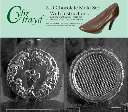 Cybrtrayd V092AB Chocolate Candy Mold, Includes 3D Chocolate Molds Instructions and 2-Mold Kit, Round Pour Box with Cupids