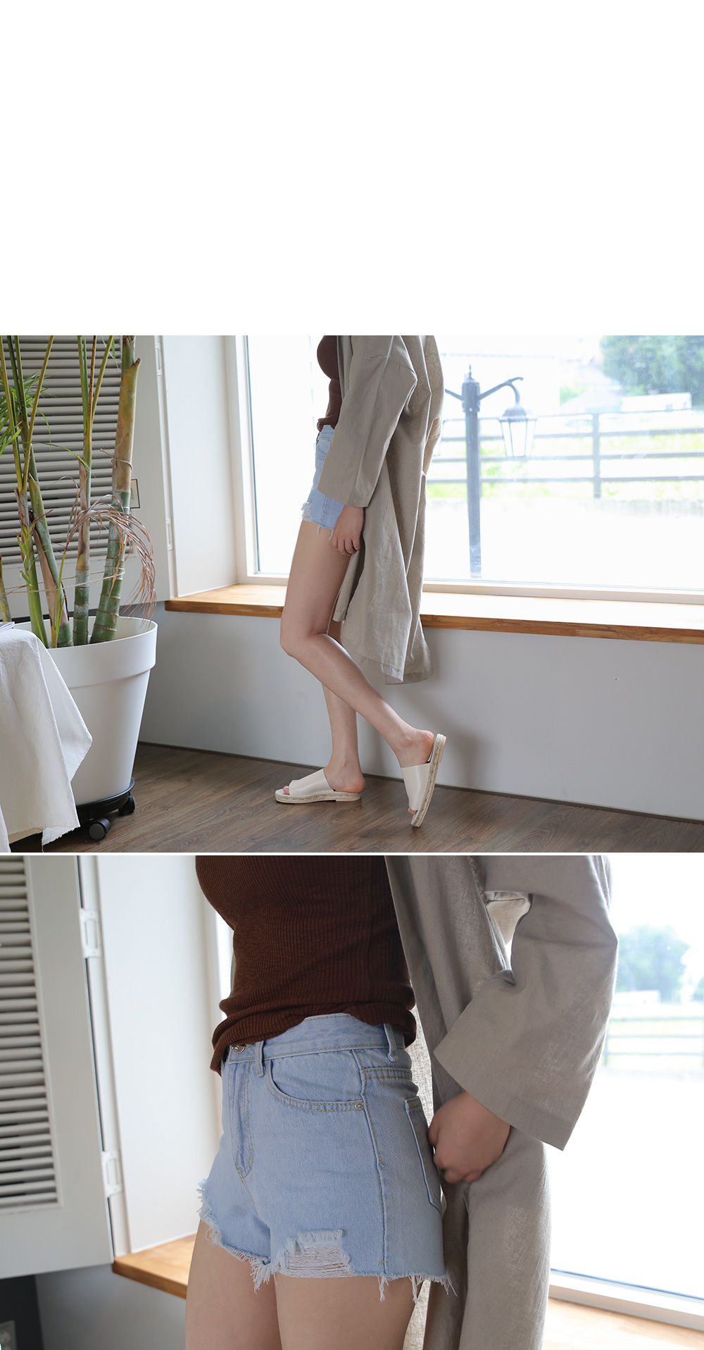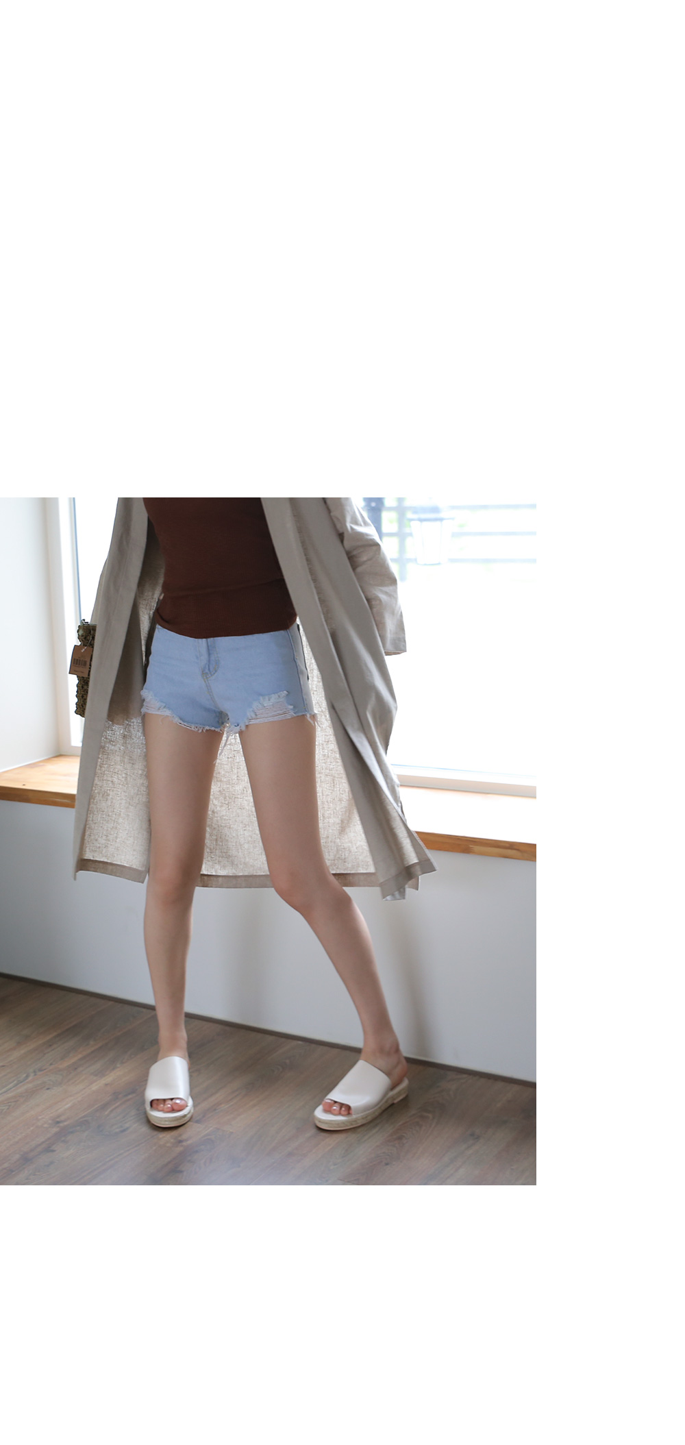 밑단 헤짐 포인트를 주어 허벅지도 슬림해 보여요