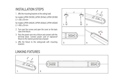 Wattage - 18W; Brightness - 1350 lm; Voltage 120V; Color temperature - 5000 K (Daylight). 30,000 Hour Lifetime, 2 Year Warranty. Resistant to low and high temperatures.
