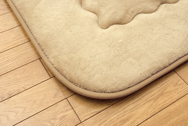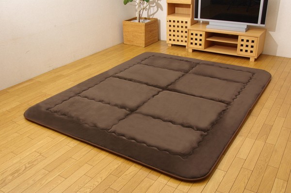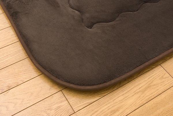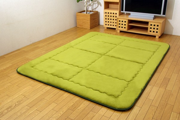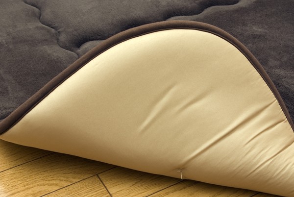 軽くて非常にやわらかい肌感触が特徴のフランネル生地を使用しています。さらにパイル長を8mmにすることによってフワフワとした肌触りを実現しました。中材にはクッション性にこだわった国産の固綿40mmを使用しています。十分な弾力性があるのでフローリングでのご使用にも最適です。遮音特級LL-30を取得しています。床下への騒音も軽減します。また、こたつと併用するとこたつの熱を床下へ逃しにくくなるので省エネ効果もあります。
