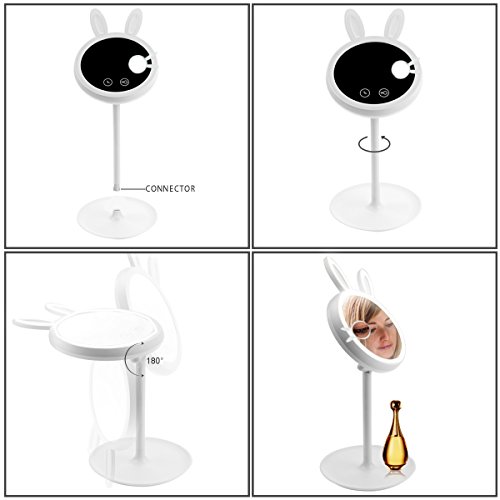 - -PORTABLE & FOLDABLE,EASY OPERATION.Stand removable,Mirror Foldable,Touch Screen Button on the Mirror to Switch on& off,Brightness Dimming with 3levels,Portable to use,very Convenient.You can put into your luggage suitcase or handbag easily.
