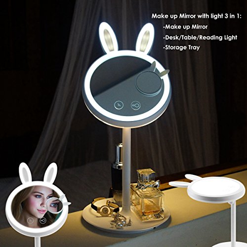 - -MULTI-FUNCTIONS MAKE UP MIRROR WITH LIGHTS.3 in 1 Design (Makeup Mirror, Table Lamp/Desk Light/Reading Light,Night Light and Storage Tray)