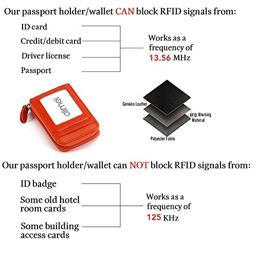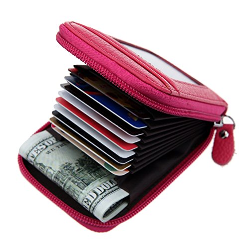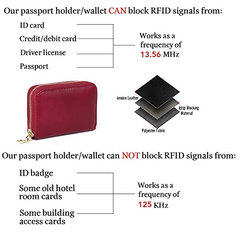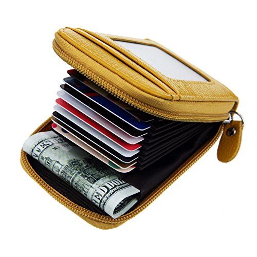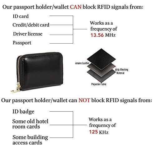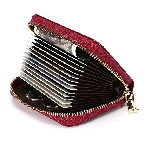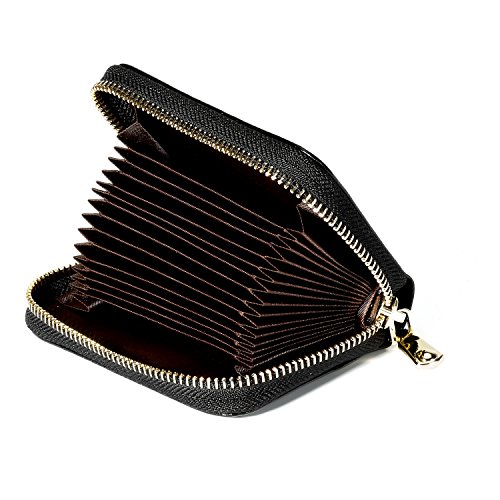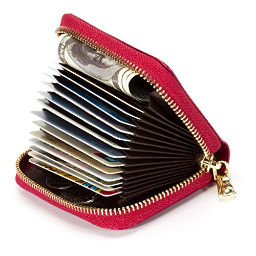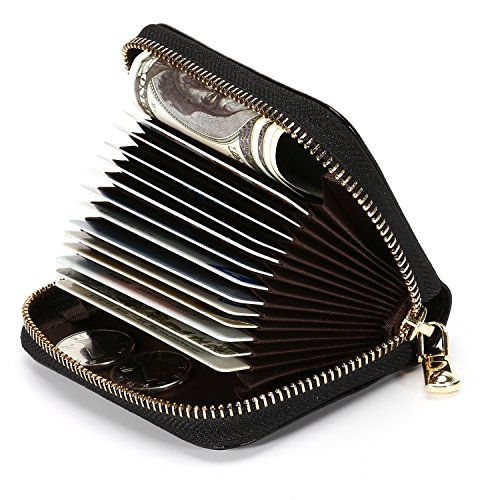 Product Features -- 100% high quality genuine leather -- RFID Blocking - Anti-theft -- Smooth zipper compact design -- Accordion style - multi card slots -- Light weight- Only 0.15lbs -- Slim - Wallet Size: 4.4"L x 3.1"W x 1.1"H inches -- Mini design - high capacity
