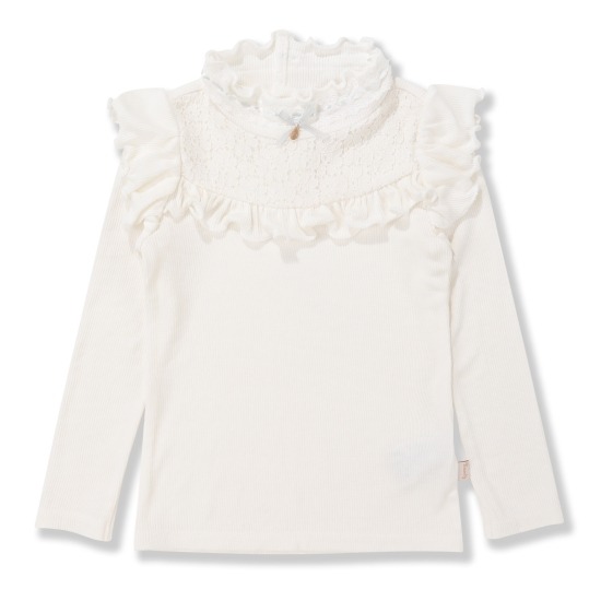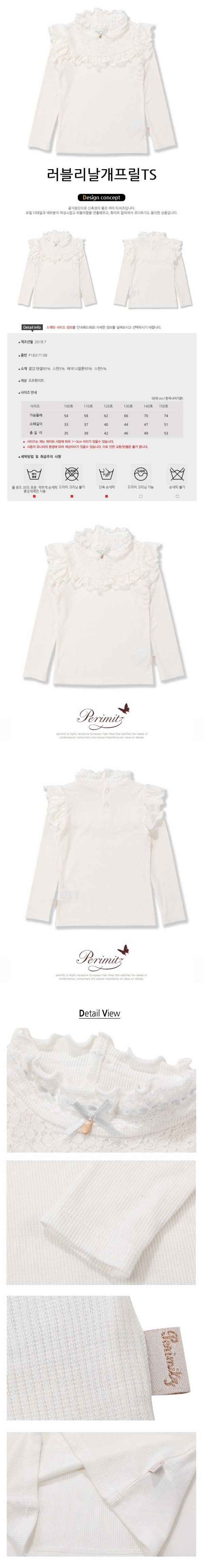 골지원단으로 신축성이 좋은 여아 티셔츠입니다.프릴 디테일과 넥부분이 여성스럽고 러블리함을 연출해주고 화이트칼라여서 코디하기도 용이한 상품입니다.