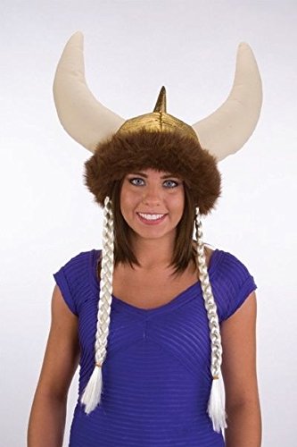 Product DescriptionThis plush metallic viking hat has a faux-fur trim and realistic looking braids0