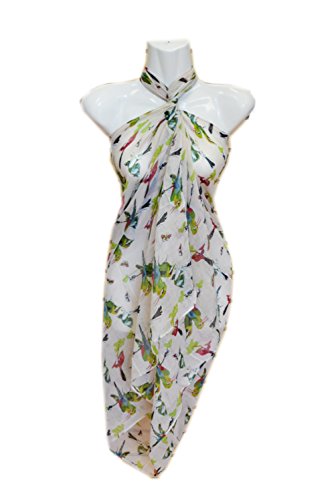 Title : SCARF_TRADINGINC® Birds Pareo Sarong Swimsuite Cover-up (Hummingbird beige)