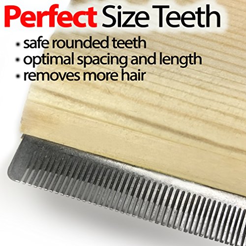 - ? RECOMMENDED: Veterinarians, Groomers, and Pet Professionals. Effectively reduces shedding on Short, Medium and Long Hair. Removes even the Undercoat Hair. ?Wood Handle and Long Teeth Allows Deep Fur Removal and Stimulate the Skin Blood Circulation. Dogs and Cats Dig it.