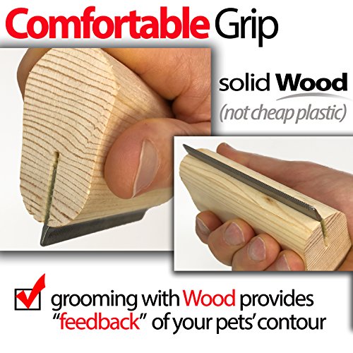 - ? ORGANIC WOOD HANDLE: ?Why? We understand the world has enough Plastic. Our Solid Wood Grip is the Most Comfortable and it Provides Feedback During De Shedding and Grooming. Deshedding is Now Safer as you Groom your Pet. The Wood Handle Provides Feedback as you Comb Your Pet. ?You Feel every Contour on your Pet - not like Cheap Plastic.