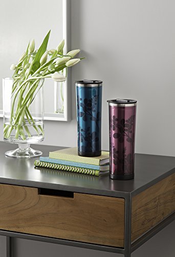 Takeya Double Wall Stainless Steel Flower Pattern Tumbler, 16-Ounce, Merlot