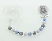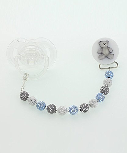 -. Title : Crystal Dream Elegant Blue White and Grey Beads with Teddy Bear Keepsake Unisex Baby Pacifier clip 8 Inch (CPGTB)