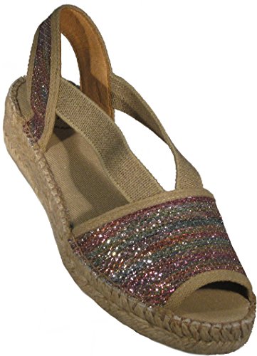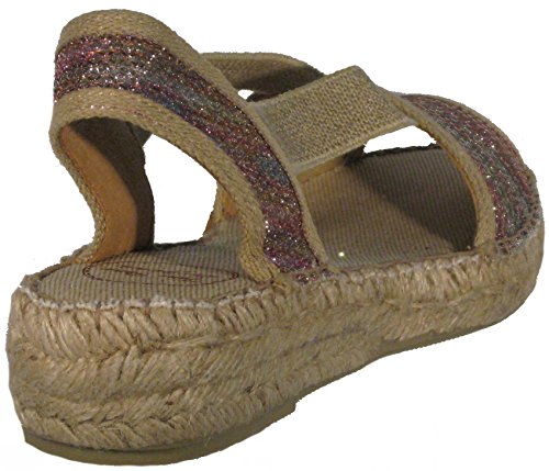 Binding : Apparel Product Description This made for Spring espadrille has a soft lined sparkle mesh upper that will garner all the attention you can handle. The elastic straps hold you comfortably in this sandal while the 1" inch platform keeps you safely off the ground. Glimmer and glamour all in one great espadrille. Made in Spain 0