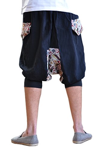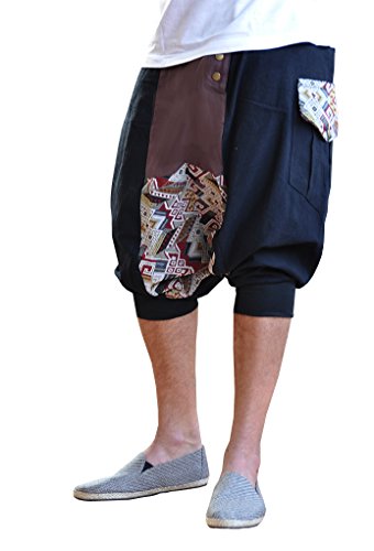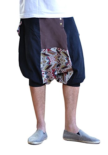 Your short harem pants for summer 2016, 100 % cotton. The cotton was treated with 90 °C steam and can no longer shrink. The short harem pants have different patterns in the deep crotch and on the side pockets. They have two side pockets that can be firmly closed with snaps. The button placket in the crotch and the buttons on the pockets are reinforced, additional belt loops are integrated on the waistband. The soft, elastic Lycra on the calves of these harem pants make them very comfortable to wear. The harem pants can be worn by men and women and are ideal for the standard sizes S, M, L and XL. We have these harem pants with long legs in our other offers as well.
