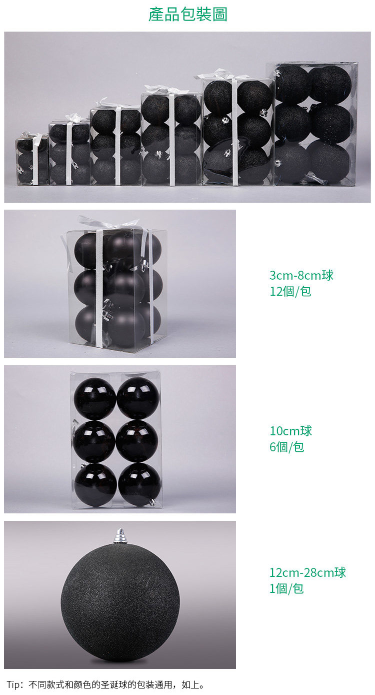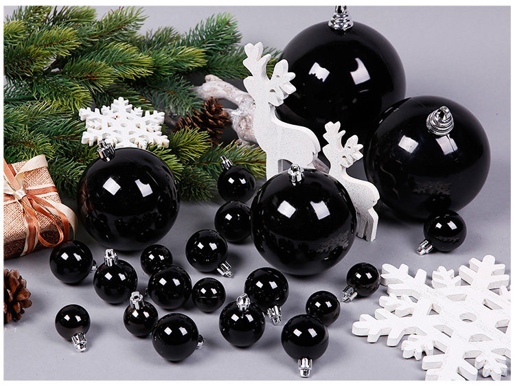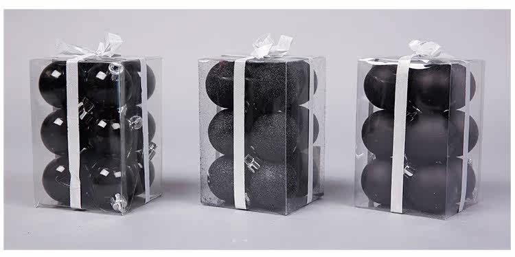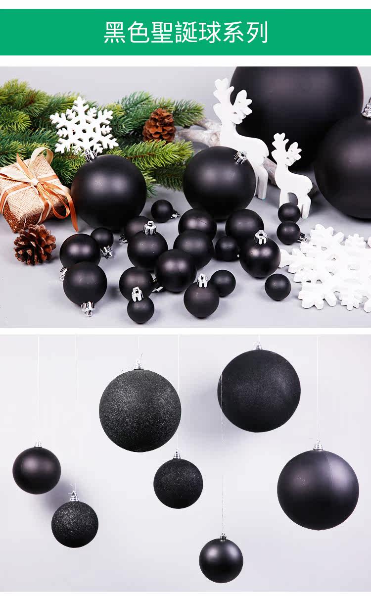 台湾晶华造花3-28cm黑色哑光亮光圣诞球圣诞节装饰品商场橱窗挂件