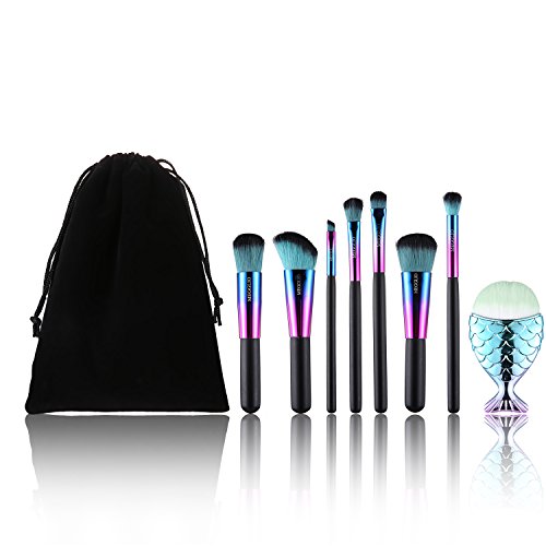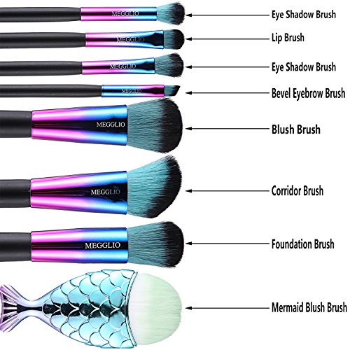 MEGGLIO Mermaid Make-up Brush Set With Bag Professional Foundation Eyeshadow Brush Colorful Gradient Makeup Tools (with bag)