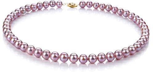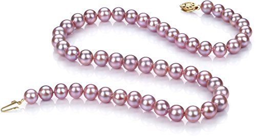This lavender cultured pearl necklace will quickly become the preferred choice among all the fine jewelry in your collection. Outstanding quality with almost no blemishes or other marks makes this piece a classic and dependable quality piece. A beautiful finishing touch for any outfit, lavender cultured pearls are an unusual look that will draw many an admiring glance. You will enjoy the versatile 7 to 8mm size - a perfect size for both business and pleasure. This beautiful AA quality necklace features outstanding AAA luster, slightly off round AA shape and AA body. This necklace is carefully hand strung, using the finest silk thread. Double knots are hand tied between each and every cultured pearl - to protect the cultured pearls from rubbing against each other with a 10 carat yellow gold fish hook clasp. Your necklace will be carefully packed and shipped to you in an elegant velvet lined box and accompanied by lots of free extras. And, if you choose, we would be delighted to gift wrap your necklace and turn this necklace into an unforgettable gift. The cultured pearl color that you receive may vary slightly from that shown in the picture. Cultured pearls are playful with light, and depending on the light conditions you view them at, they will present a slightly different color - a fascinating phenomenon. We invite you to look at your cultured pearls in bright sunlight, on a cloudy day and inside your home. The change of color you will see will surprise and amaze you. We hope you enjoy the natures beauty and its unique color spectrum that cultured pearls offer.Feature