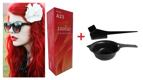 -. Binding : Misc. -. Brand : Hair Salon -. Color : Red -. Feature : Set Permanent Hair Color Dye Berina A23 Bright Red Color X 1 Box + Hair Coloring Dyeing Kit Dye Brush Comb Bowl / How to use : 1. Select the desired Berina Color. 2. Carry out sensitivity test 24 hours before coloring(Mentioned on Every box). 3. Wash hair before coloring. 4. Premix the color cream with the equal amount of peroxide thoroughly. ( The two tubes together.) 5. Apply premix with brush on hair section by section. 6. Leave premix on hair for 20-40 minutes. 7. Rinse hair thoroughly. / This product is from leading department store / Product From Thailand / Thank you for your order. (Guarantee 100% Genuine Product / World Wide Shipping /Ships from and sold by Super VE.) -. Label : Salon Hair -. Manufacturer : Salon Hair -. Model : L-8465467 -. PackageQuantity : 1 -. ProductGroup : Beauty -. ProductTypeName : BEAUTY -. Publisher : Salon Hair -. Studio : Salon Hair -. Title : Set Permanent Hair Color Dye Berina A23 Bright Red Color + Hair Coloring Dyeing Kit Dye Brush Comb Bowl