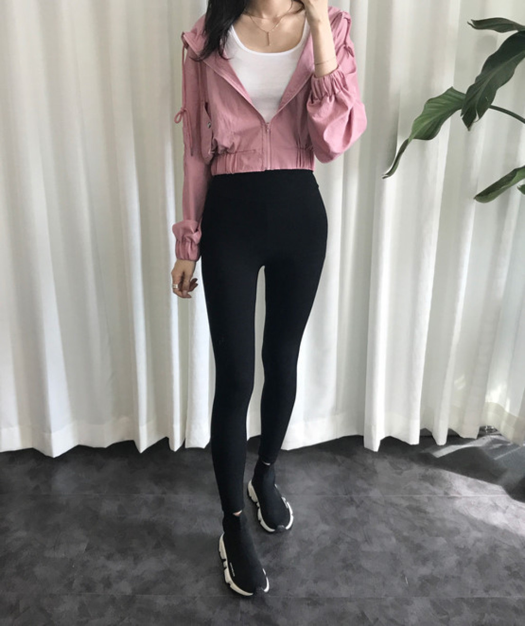 귀여운 크롭기장이라 하이웨스트 팬츠와