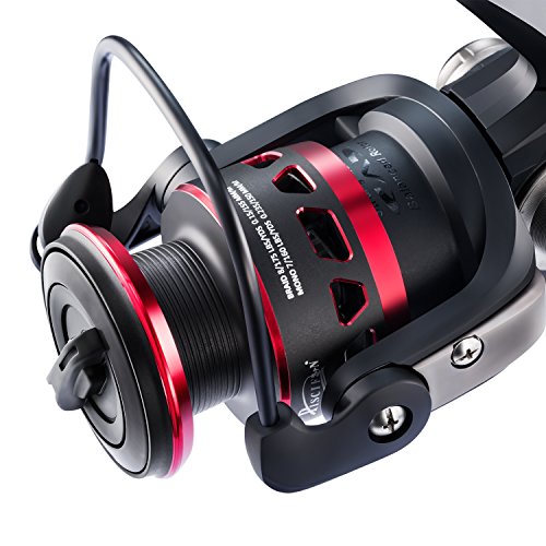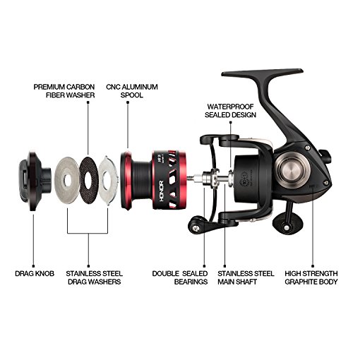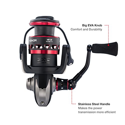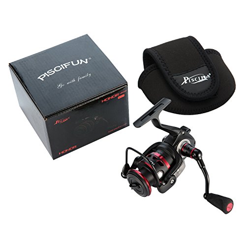 -. Binding : Misc. -. Brand : Piscifun -. Color : Black and Red -. Feature : PROFESSIONAL - Designed for saltwater & freshwater applications. Piscifun Honor Spinning Reel features everything one would expect from a legendary fishing tackle manufacture / BUTTER SMOOTH - 10 + 1 sealed bearings provide increased corrosion protection while maintaining smooth and consistent operation. Premium aluminum machined gears provides outstanding gear feel, durability and performance / HIGH POWER - Up to 22.1 lbs carbon fiber max drag. Precise stainless steel main shaft and components improve corrosion resistance while the bail system delivers improved durability / LIGHT & DURABLE - Carbon fiber rotor provides significant weight reduction without sacrificing strength or durability. Compactly CNC machined aluminum handle provides a more ergonomic design that is extremely lightweight. Large EVA knobs provide great grip with increased comfort / PERFORMANCE - An aluminum reinforced graphite body design seamlessly combines with the quality gearbox. The result is a lightweight body that houses gears in perfect alignment. The new Honor line management system provides better casting control of all types of fishing lines -. IsAutographed : 0 -. IsMemorabilia : 0 -. Label : Piscifun -. Manufacturer : Piscifun -. PackageQuantity : 1 -. ProductGroup : Sports -. ProductTypeName : SPORTING_GOODS -. Publisher : Piscifun -. Studio : Piscifun -. Title : Piscifun Honor Spinning Reel - Lightweight Ultra Smooth Powerful Spinning Fishing Reels, 10+1 Shielded Bearings, Sealed Drag, Latest Creative Technology