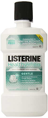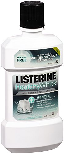 Listerine Healthy White Gentle Sodium Fluoride Anticavity Mouthrinse, our first peroxide free whitening rinse, not only removes and prevents tough stains but is gentle on enamel.