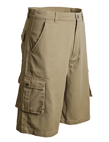 6 Pockets Shorts---- MIER twill cargo shorts featuring 2 side roomy slanted pockets, 2 rear snap-flap pockets, and 2 cargo pockets, total 6 pockets ensures you'll always have space to stash your cell, keys and some cash