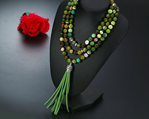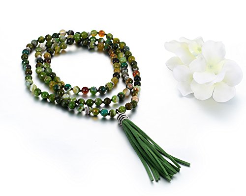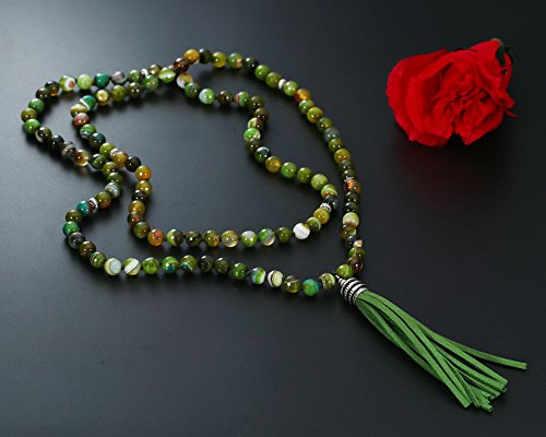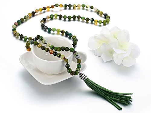 STYLE: Multi-Faceted Agate Beads Lariat Necklace Handmade Olive Tassel Pendant Necklace for Women Girls