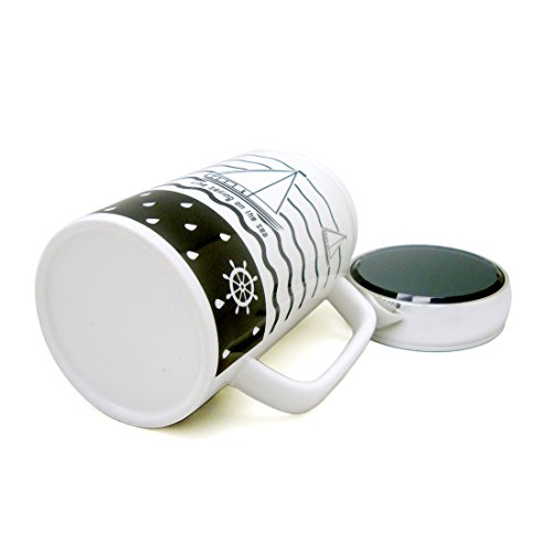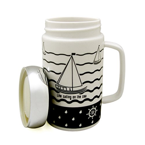 Ziiyan 16oz High-capacity Navigation Elements Ceramic Car Mug Spill Proof Travel Coffee Cup with Lid, Sailboat