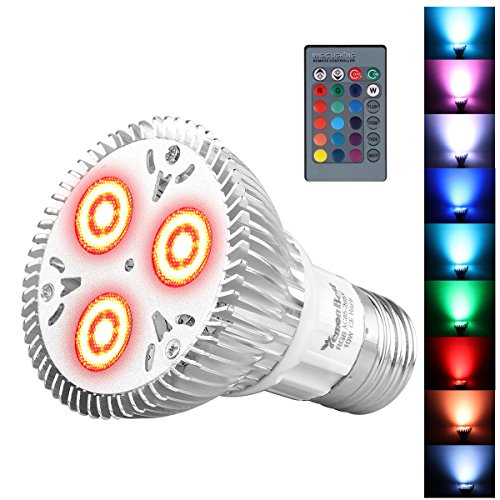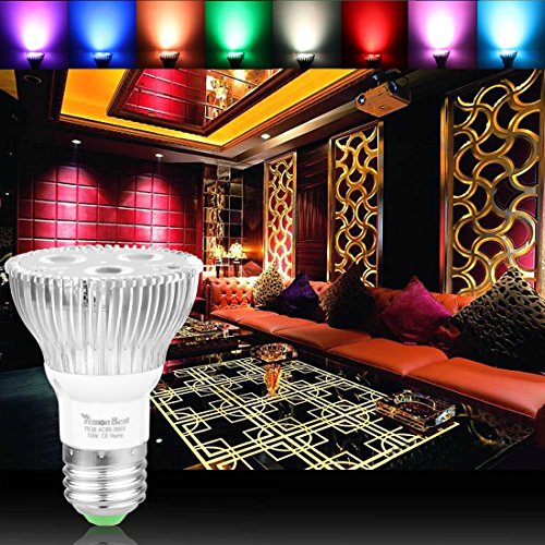 * 10W PAR20 RGB LED spotlight bulb, standard E27 Base, made of thick polished aluminum, good for heat radiation, with longer lifespan than other RGB bulbs.