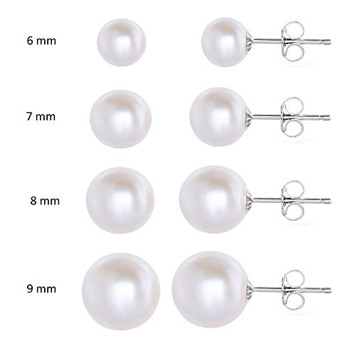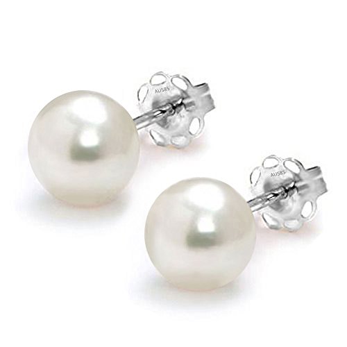 Design with 14k solid white gold real natural freshwater cultured pearl handpicked AAA quality white round earrings studs