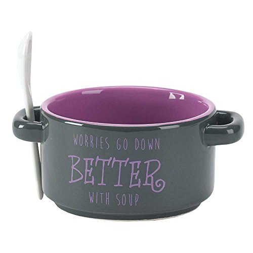 Better with Soup 14 Oz. Black and Purple Ceramic Dolomite Soup Bowl with Spoon