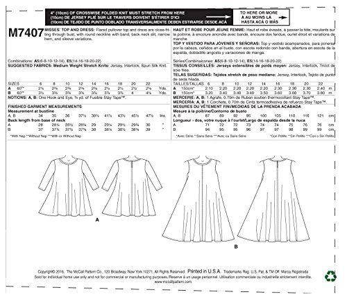 -. Title : MCCALLS M7407 MISSES TOP & DRESS (SIZE 6-14) SEWING PATTERN