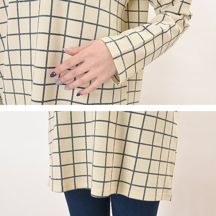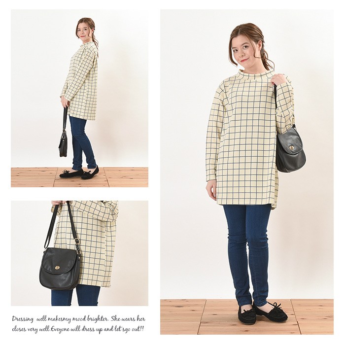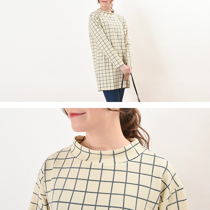 立体的な生地感で、ふっくらとオシャレな雰囲気のふくれジャガード生地のプルオーバーです。人気の高いボトルネックデザインは、首回りがスッキリと見せれるので着やせ効果抜群ですシンプルで着回しのしやすいウィンドペンチェック柄で、シンプルかつこなれ感があり幅広いコーディネートに合わせやすいのでワードローブにお使いいただけます全体的にゆったりとしたシルエットで、着心地楽ちんです。Mサイズ Lサイズ