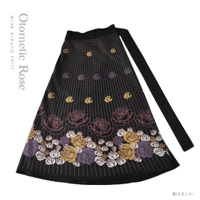 -. Title : スカート ひざ丈 薔薇の巻きスカート 乙女ちっくローズ ブラック