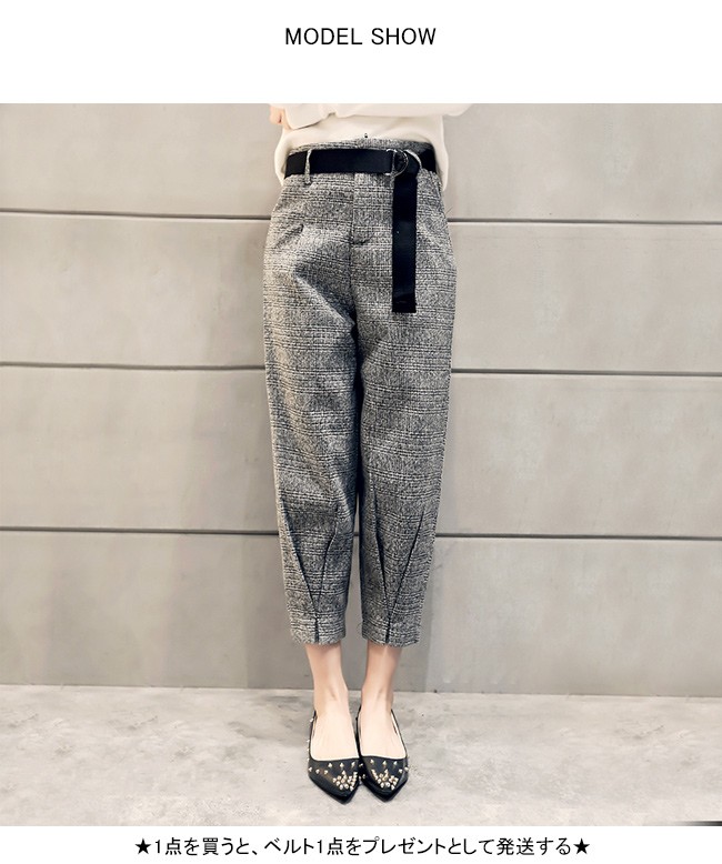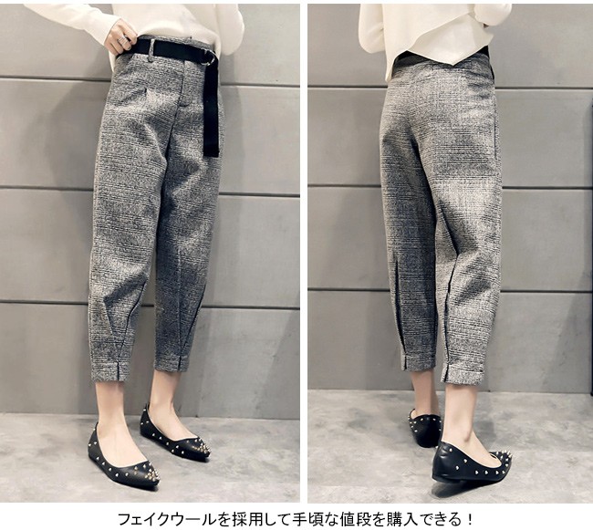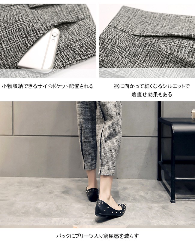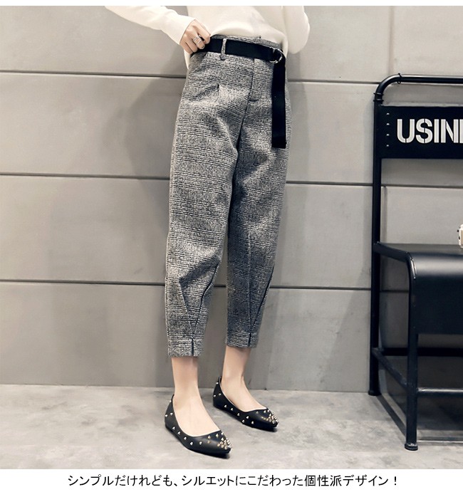 | 商品名 | グレンチェックパンツ ハーレムパンツ ラシャパンツ レディース 九分丈 グレンチェック 美脚スッキリ オシャレ 2017秋新作 |